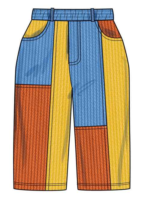 T-kreklam ar kapuci ar īsām piedurknēm ir dubultā adatas šuve piedurknēs un apakšmalā. Džinsiem ar priekšējo un aizmugurējo vīļu detaļām ir elastīga jostasvieta, jostas cilpas un kabatas. Skats C ir kontrasts.