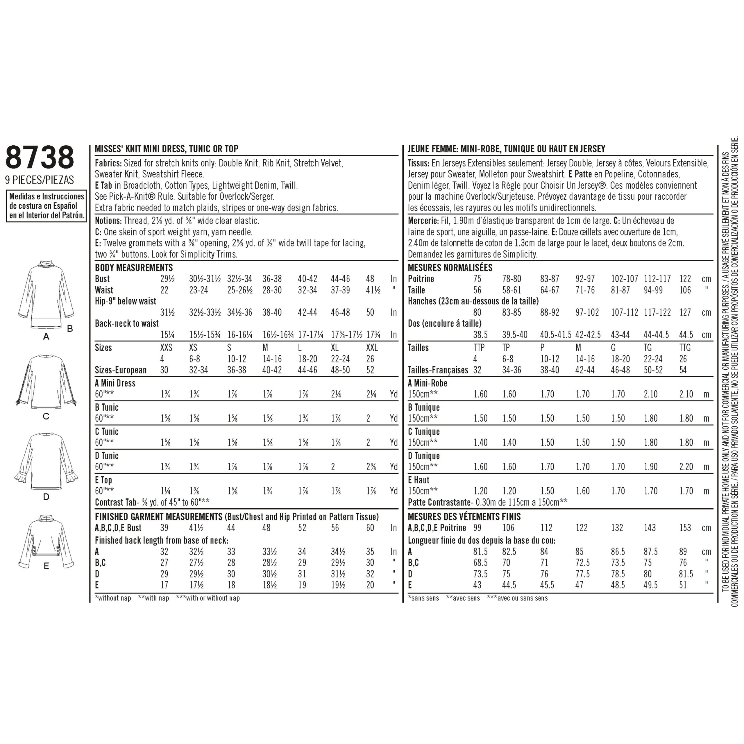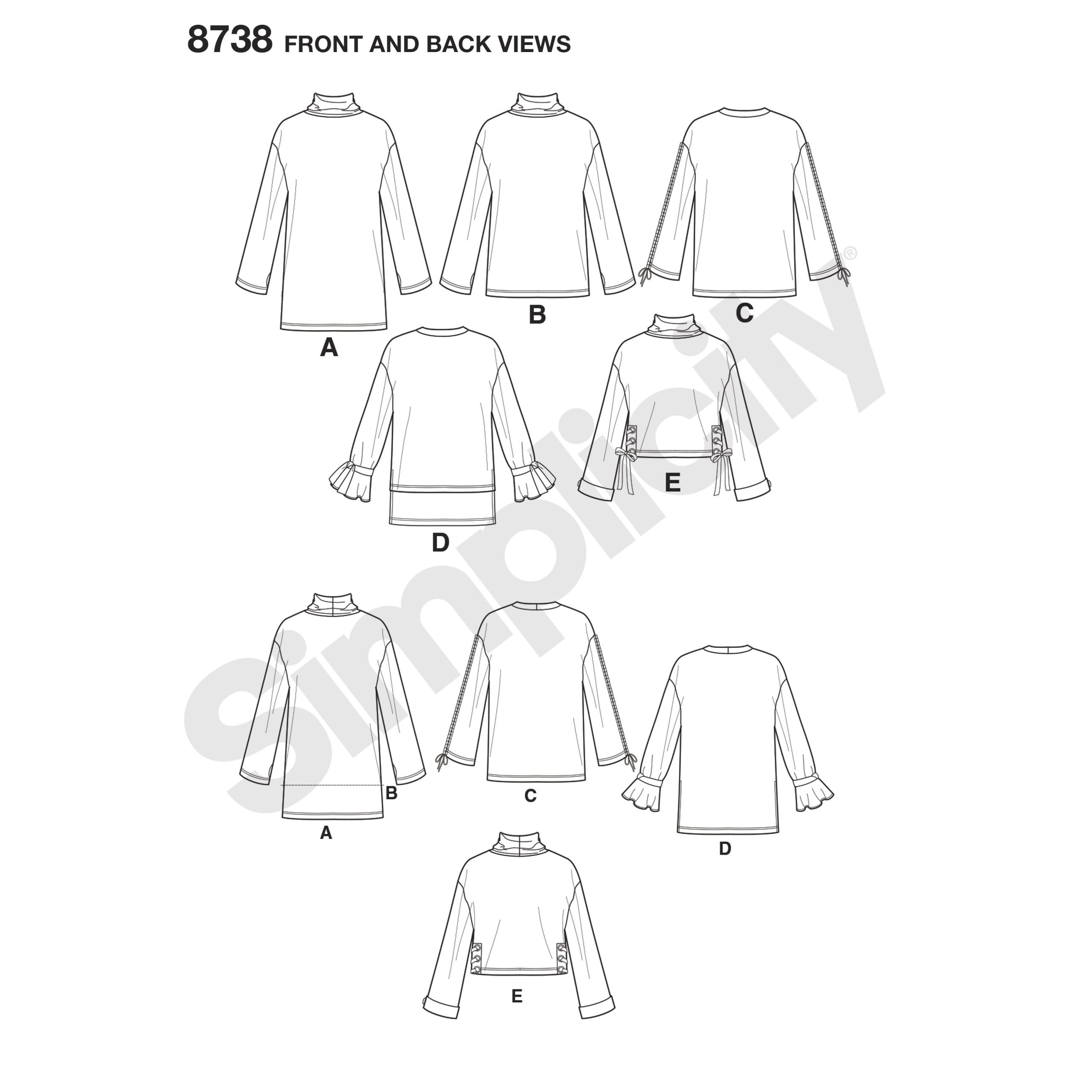 Saglabājiet mājīgu un siltu ar šiem viegli šūjamajiem daudzpusīgajiem džempera adījumiem. Ietver, apgrieztas, tunikas un kleitu iespējas ar bruņurupuču vai apkalpes kakliem un nomest plecus. Pievienojiet piedurknēm un vai sāniem piedurknes un vai sāniem mežģīnes vai kaklasaites, lai padarītu šīs augšdaļas unikālas. Simplicity šūšanas modelis.