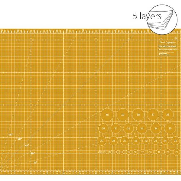 3mm biezs, 5 slāņu griešanas paklājs ar pašatjaunošanās funkciju un izmēru atzīmēm centimetros, kā arī collās. Ar atzīmētiem leņķiem un paralēlām līnijām, lai precīzi veiktu griešanu dažāda veida projektiem. Neatsverams palīgs kvilta un tekstilmozaīkas darbiem. Pieejamas dažādas krāsas un izmēri.