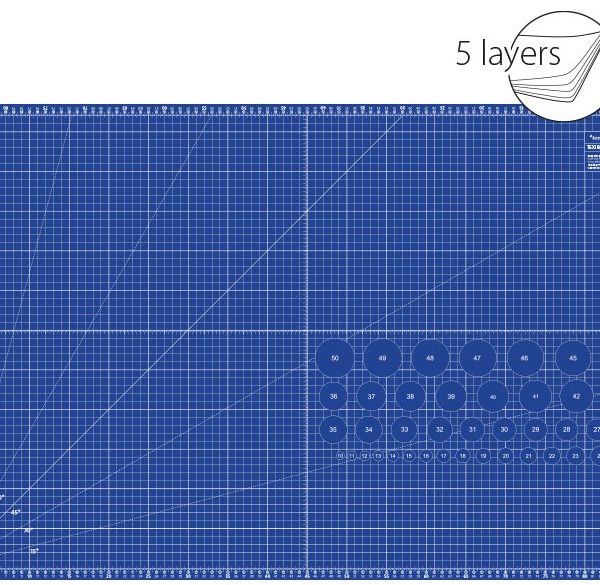 3mm biezs, 5 slāņu griešanas paklājs ar pašatjaunošanās funkciju un izmēru atzīmēm centimetros, kā arī collās. Ar atzīmētiem leņķiem un paralēlām līnijām, lai precīzi veiktu griešanu dažāda veida projektiem. Neatsverams palīgs kvilta un tekstilmozaīkas darbiem. Pieejamas dažādas krāsas un izmēri.