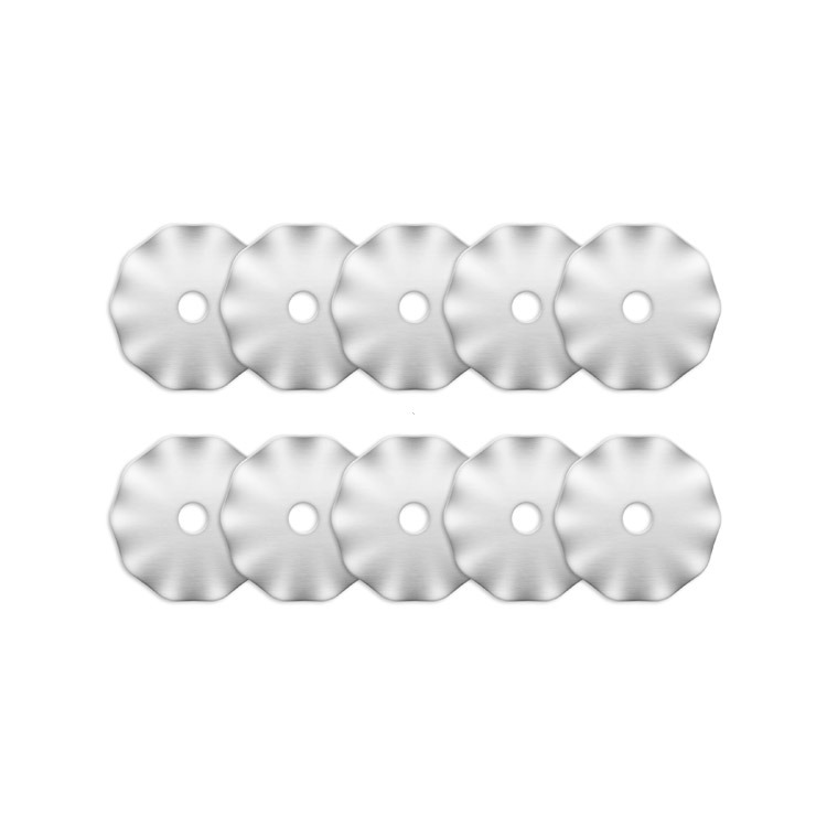 Viļņotas dekoratīvas formas Rezerves asmeņi rotējošajam nazim 45mm – 10gab. Augstas kvalitātes un ilgmūžīgs Japāņu tērauds.